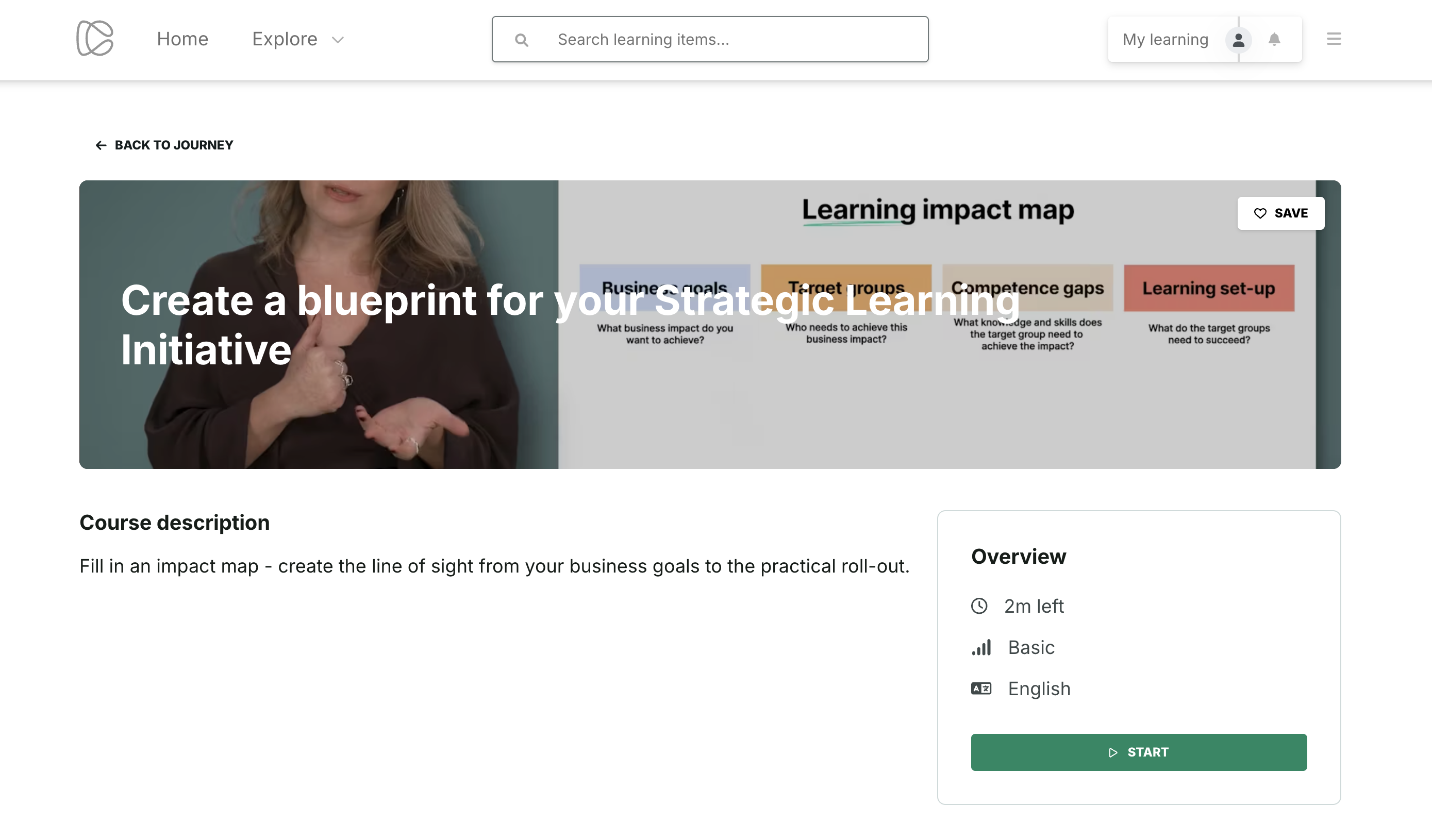 • Entry experience is consistent whether learners enter from the Catalog, My Learning, or a Journey