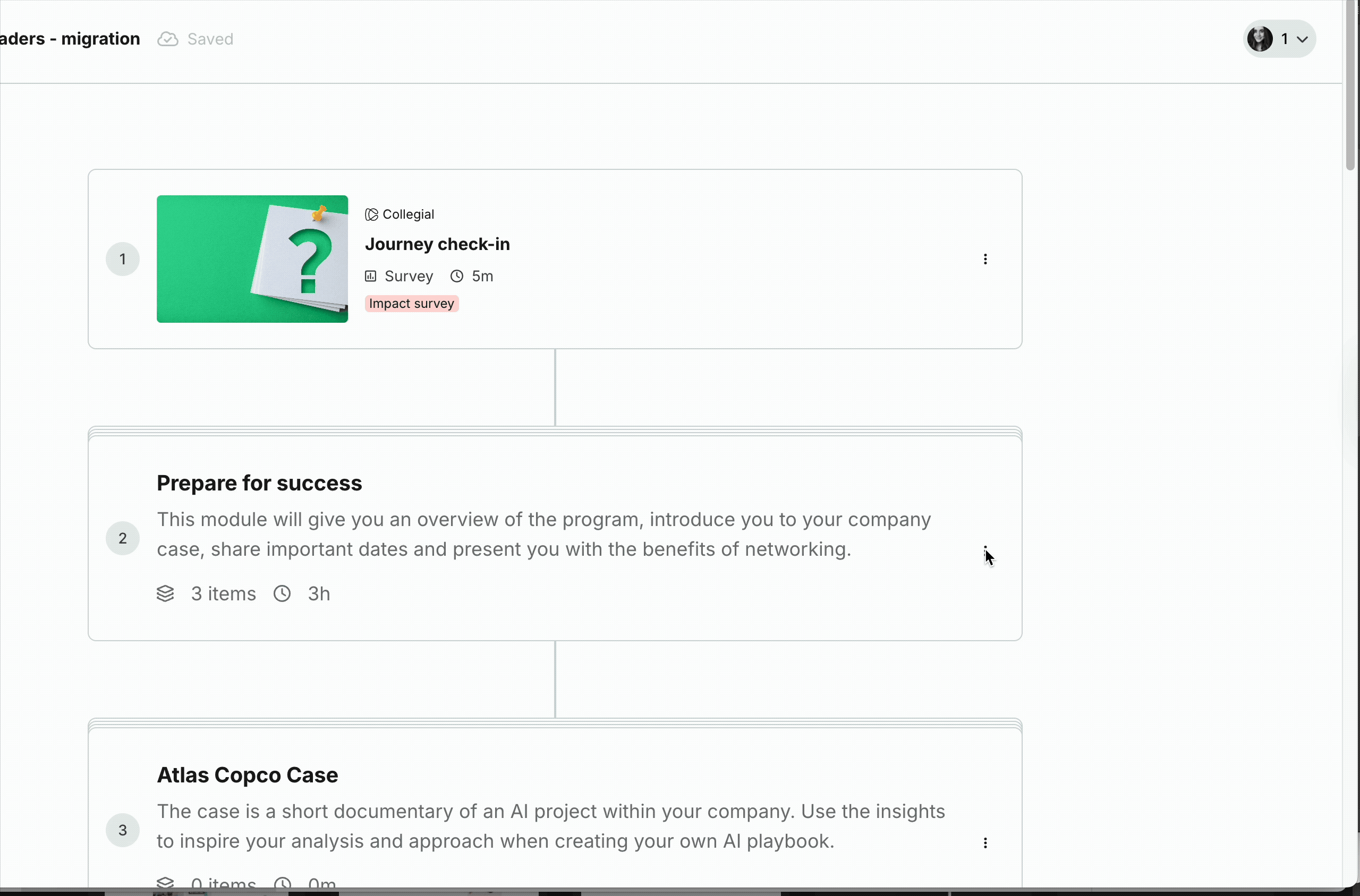 We’ve introduced Sections to group learning items within a Journey. This aims to make Journeys easier to scan and manage, improving structure for admins and orientation for learners.
