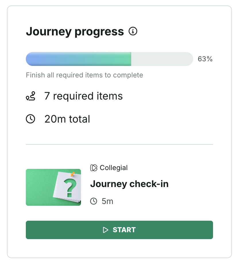 • Surfaces the exact next step to start or continue when the learner has joined the journey.