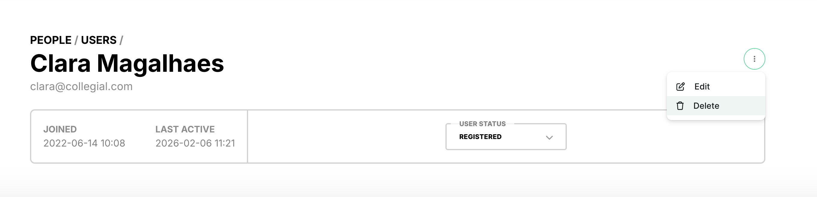 The existing user edit and delete flow in the People tab is now available to all admin roles. Admins can edit a user’s first name, last name, and username, or permanently delete a user after confirming the action. This aims to give customer admins a consistent way to manage user updates and deletions within their own tenant, including GDPR Right to Be Forgotten requests.